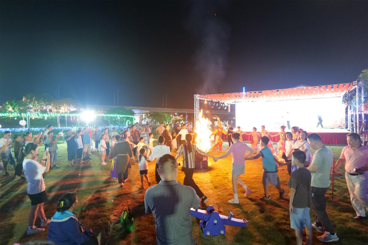 中秋节当天,荷塘印象举办了迎中秋草坪音乐会和赏月篝火晚会,当晚吸引大批游客现场观看和参与。大家沐浴着皎洁的月光,搭起帐篷,或驻足,或盘坐,沉浸式地观看演出。到最后,一把熊熊燃起的篝火更是点燃大家久违的激情,纷纷围着篝火狂欢起舞。