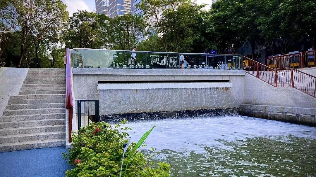 中心河二期项目 ,是依托南山区中心河而建的一座公园。南起岸湾一街,北至东滨路,全长1.7公里,面积约9万平方米。除了嬉水园,还建设了生态花园、悠游漫步道、欢乐草坪,以及光伏充电坐凳、自动饮水机等便民设施。