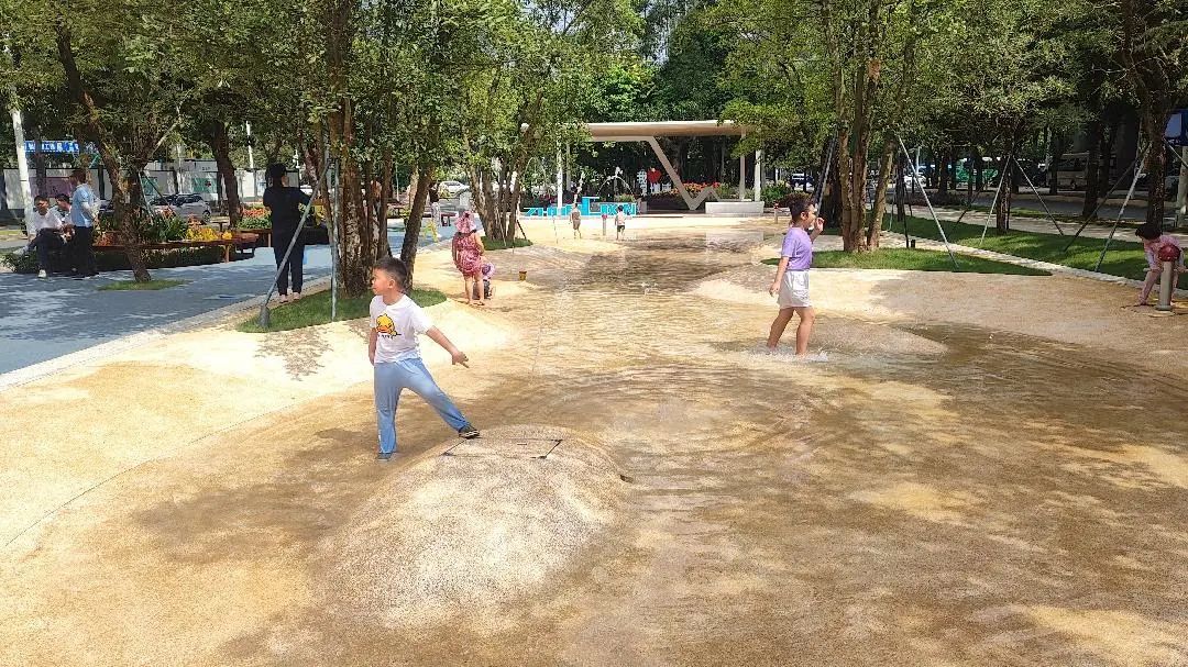 一大早,中心河二期公园的戏水池,成了小孩子们的游乐天堂。就连大人,都忍不住一起玩起了水枪游戏,仿佛回到了童年的时光。
