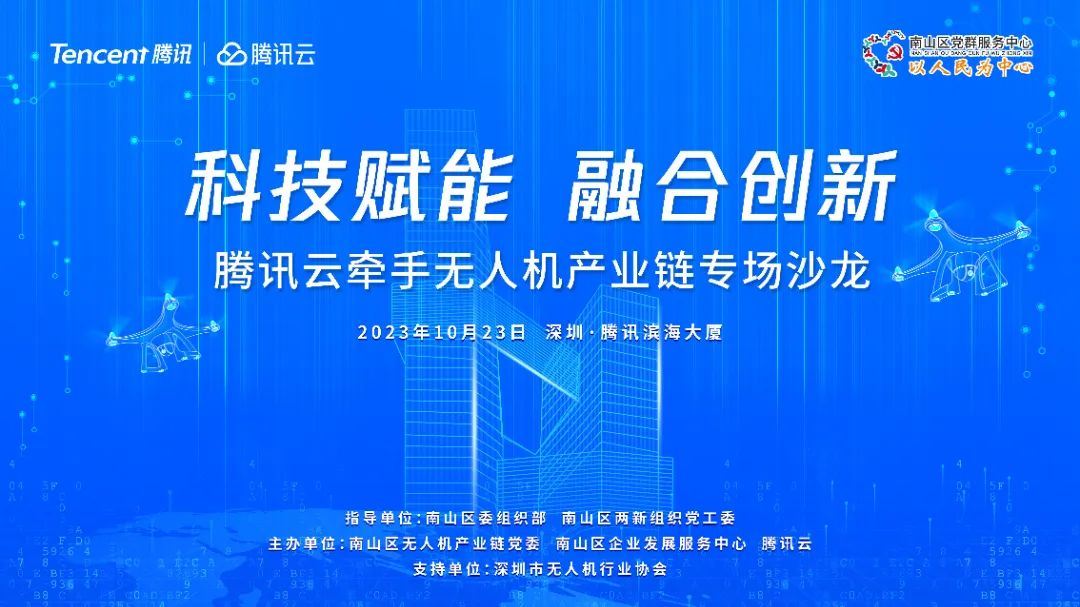 为助推大湾区无人机产业集群创新发展,现定于10月23日(星期一)下午14:00-17:30在腾讯滨海大厦举办“科技赋能·融合创新——腾讯云牵手无人机产业链专场沙龙”活动。