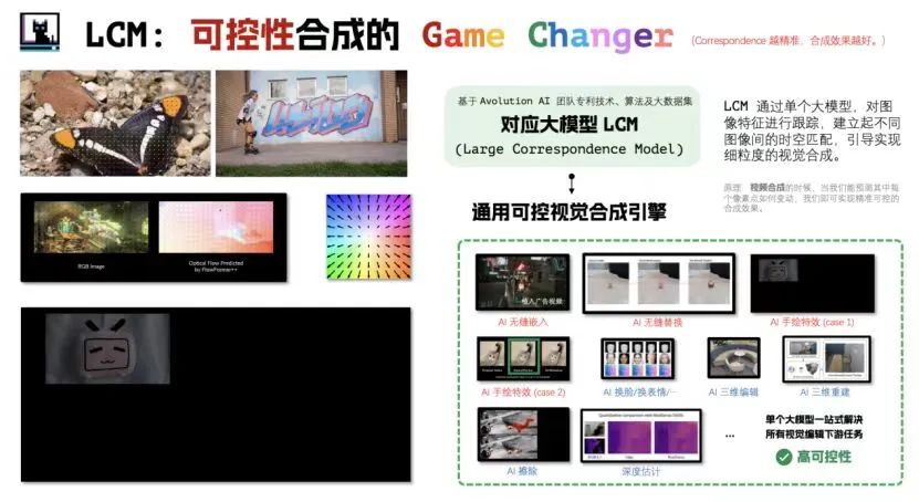 avolution.ai团队孵化于南山区深港青年创新创业基地,团队开发了基于独创的LCM(large correspondence model)技术的AI(人工智能)视觉大模型,主要用于视频处理和生成。该模型的突出特点是视频处理的可控性和一致性,以及简单易用的交互模式,可提供全面的视频处理工具。视觉模型分三步开发,实现不同功能。第一步先上线AI可控植入和AI特效编辑,实现精准可控的植入和自由创作特效;第二步上线更全的AI视觉处理工具,引导社群建立并扩展LCM相关功能;第三步完善LCM模型引导的视频生成和其他视觉处理功能,逐步转型为内容平台。产品更专注于娱乐和营销领域的C端(个人)用户,能够实现2D植入、3D植入和高可控性特效生成。