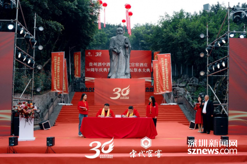 深圳新闻网2023年10月24日讯(记者 董非)“今日云景好,水绿秋山明。携壶酌流霞,搴菊泛寒荣。” 自古以来重阳节就是国人秋游登高、祭祀祈愿的重要日子。10月23日,正值重阳,贵州酒中酒集团在中国酒都茅台镇举办了贵州酒中酒集团·宋代官窖酒庄30周年庆典暨癸卯年封坛祭水大典。