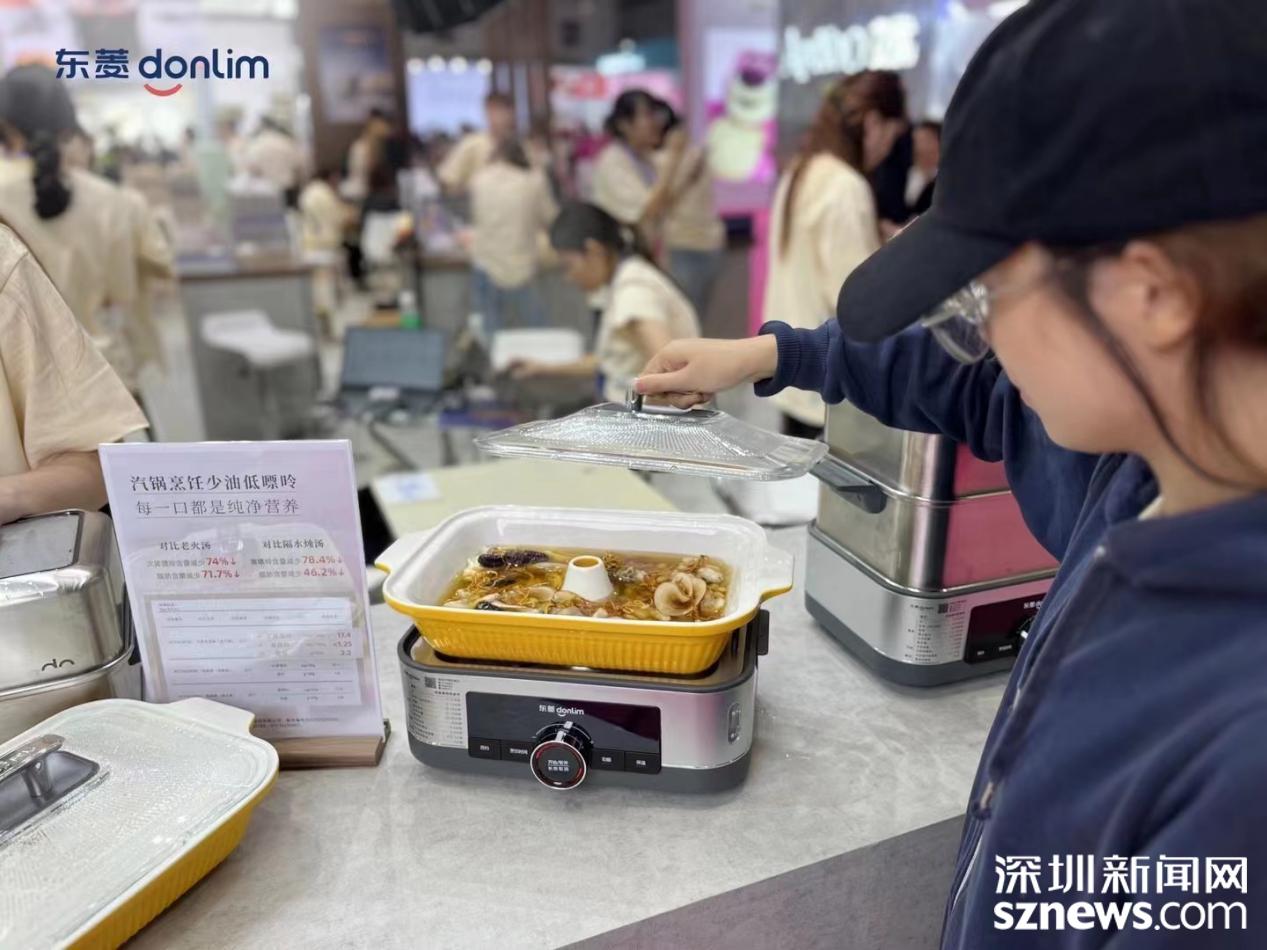 现场,东菱电蒸锅还复刻了一道海底椰汽锅鸡汤,扑鼻的香味和清澈的汤水更是吸引了不少客户和业界人士的围观。开放式厨房的设计让观众更直观地感受到电蒸锅快速出蒸汽的实力,不少客户表示,12L大容量和灵活的配件搭配可以轻松应对家宴,双层设计、上蒸下炖可以同时满足一家人不同的口味需求,大大节省每日三餐做饭的烹饪时间。