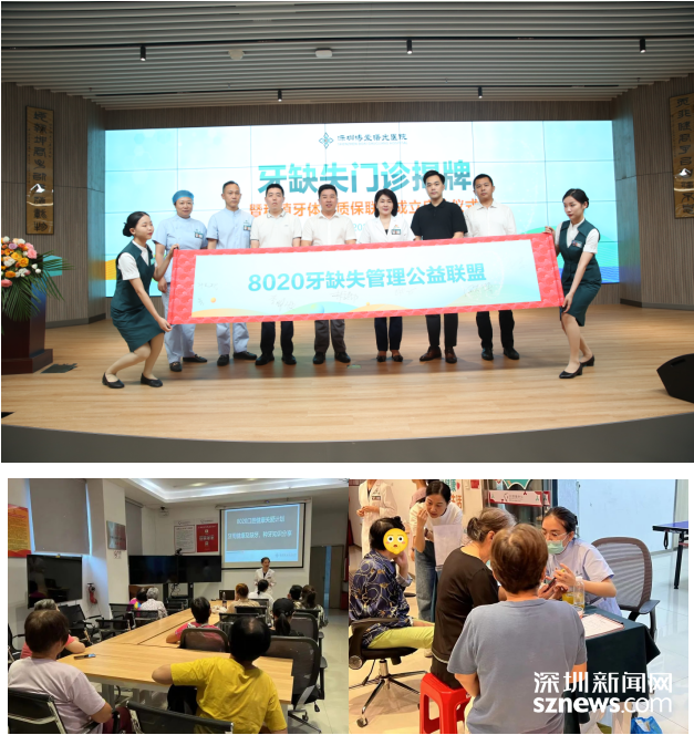 牙缺失门诊宣告开放当天,由深圳博爱曙光医院发起,罗湖区老年体育协会、笋西社区老年协会、笋岗街道义工联合会、深圳万佳健康共同参与的“8020牙缺失管理公益联盟”还正式启动并发布“牙缺失管理计划”。后续也将持续开展口腔健康公益讲座及健康义诊活动,旨在提高社区老年居民对牙缺失问题的认识,提高口腔保健意识、提供口腔疾病咨询及治疗方案。并结合口腔科“四大特色服务”、“五大特色科室”、“五大诊疗项目”,加强专病专治,改进服务流程,规范医疗体系,全方位、多角度共建和谐健康大湾区。