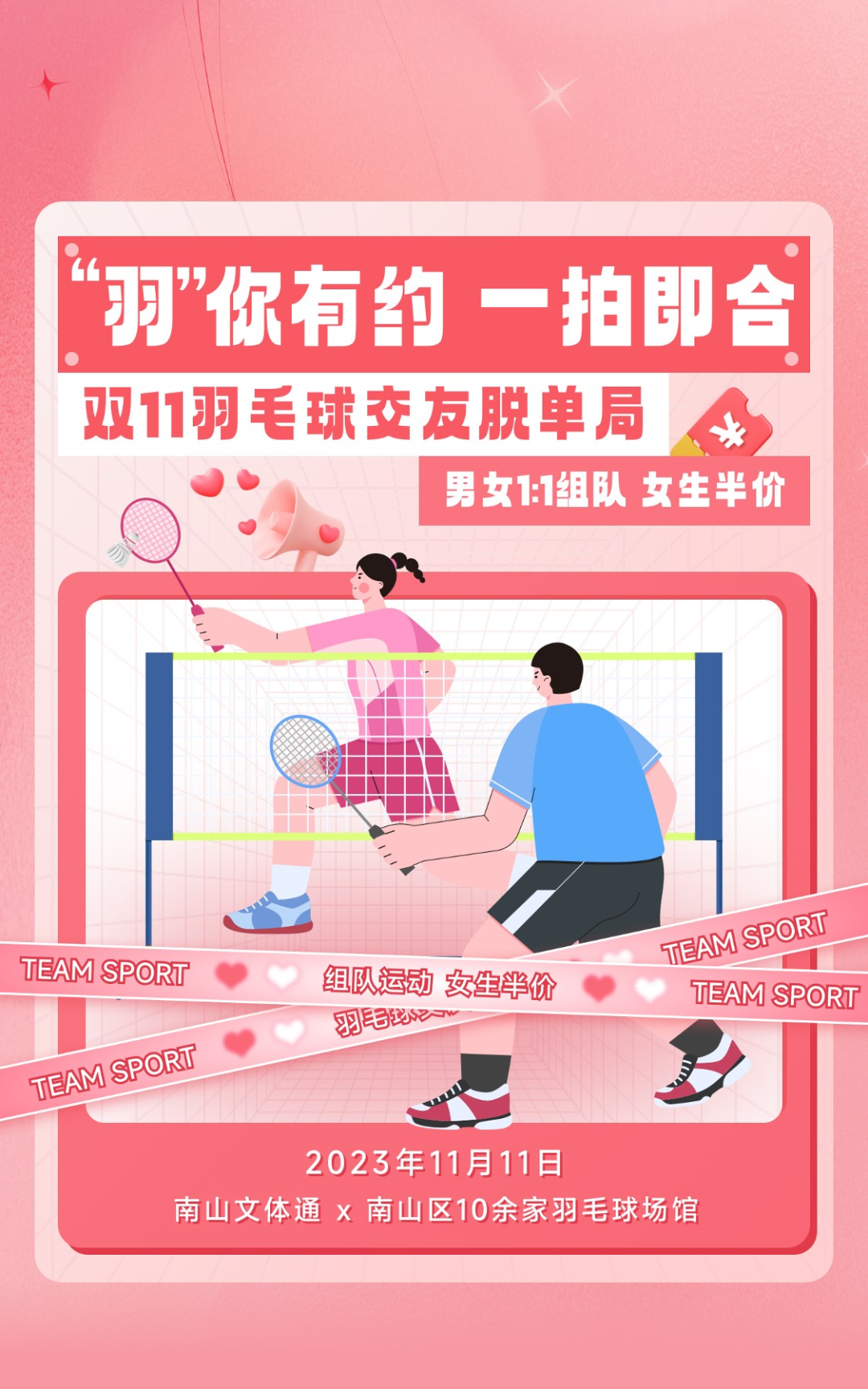 “双11羽毛球运动交友脱单局”