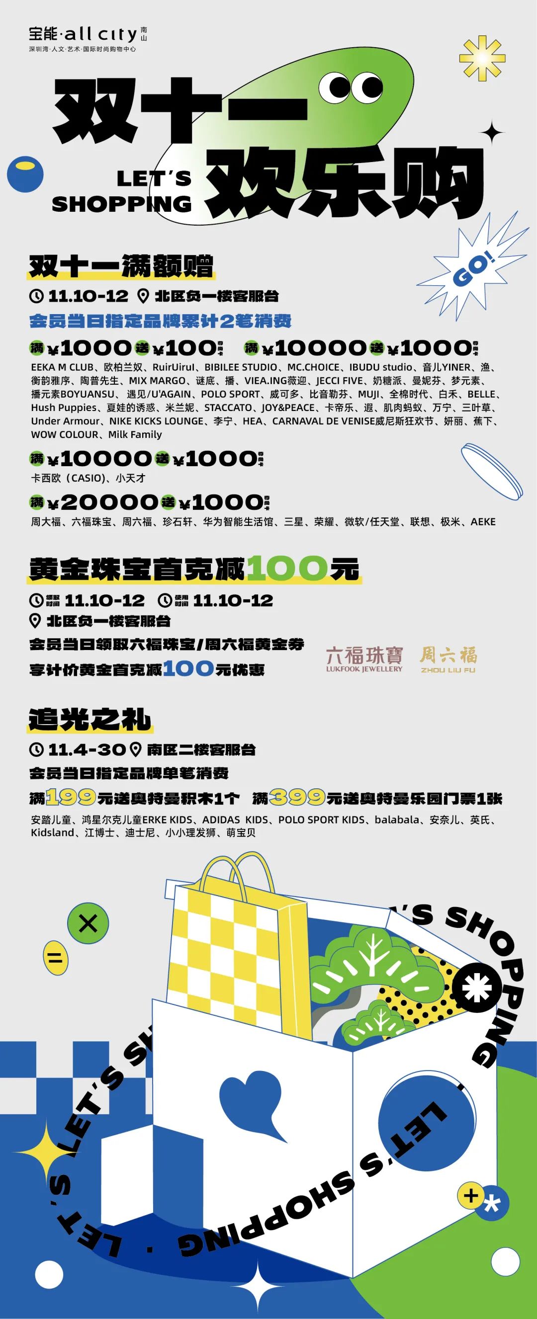 内容:以“双十一欢乐购”为主题,于11月举办双十一满额赠、黄金珠宝首克减100元、追光之旅、UDCC世界名猫展大赛等多个促消费活动。