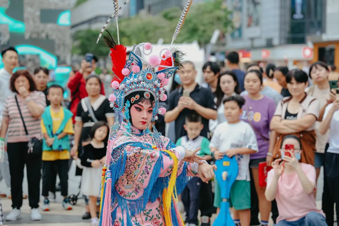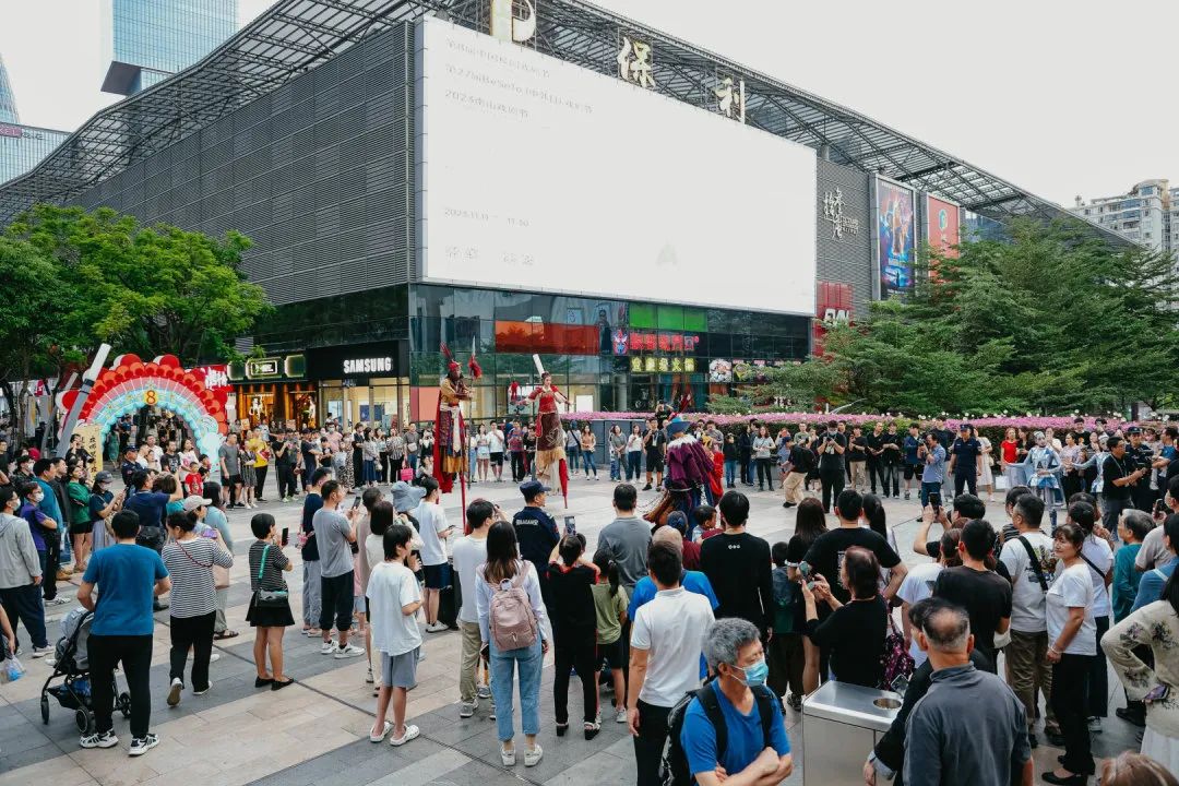 当天下午,造型各异的戏剧人物和戏剧场景,沿着深圳湾大街至保利剧院广场,一路同行一路歌,城市民谣广场音乐会更是吸引市民共情共鸣,一场戏剧的盛会在此展开——
