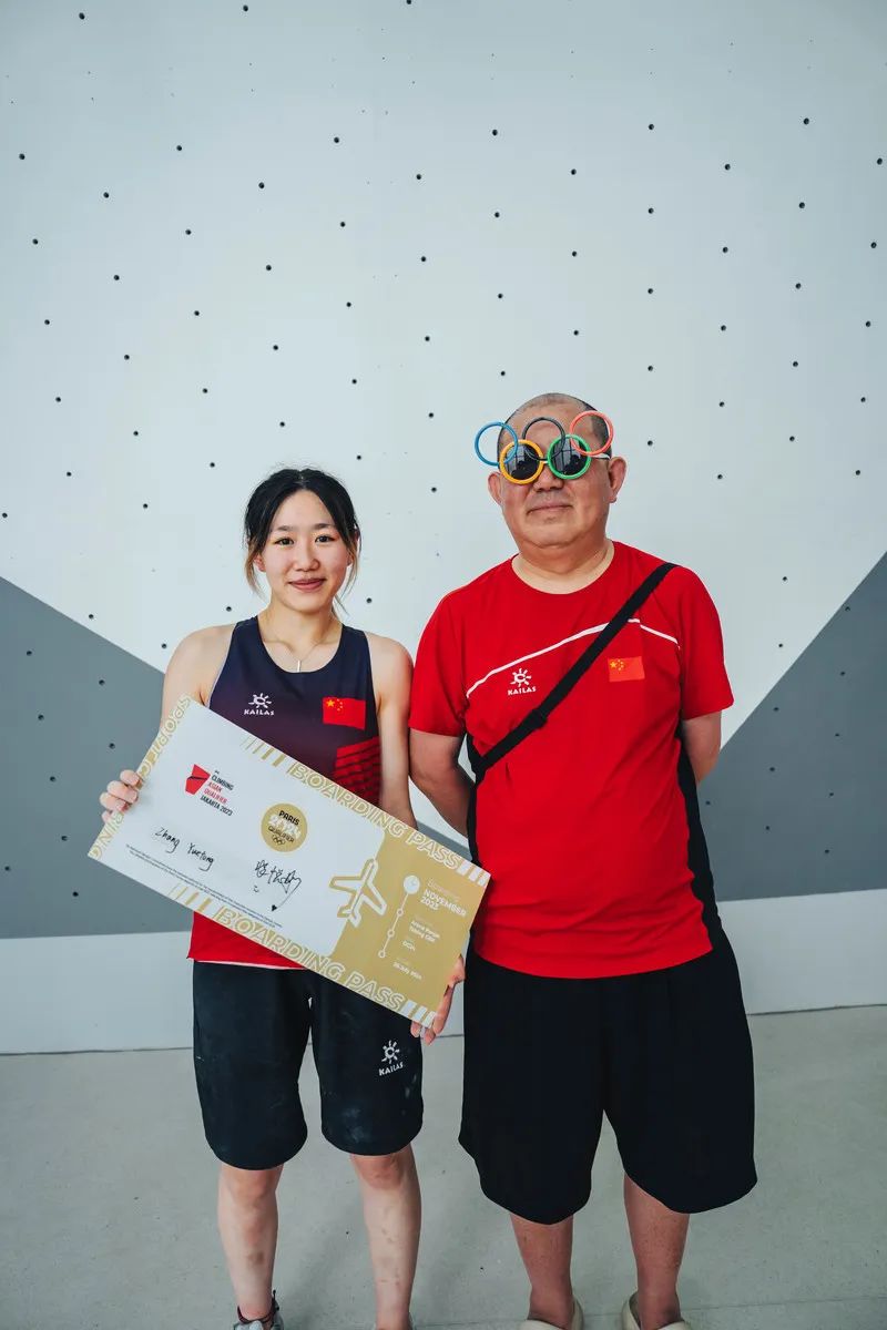 夺冠后,张悦彤在通往巴黎奥运的“飞机票”上签下了自己的名字,并戴上了奥运五环墨镜进行庆祝,还与一路支持陪伴她的父亲合影留念。