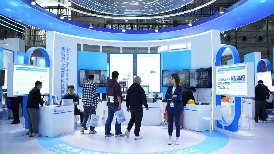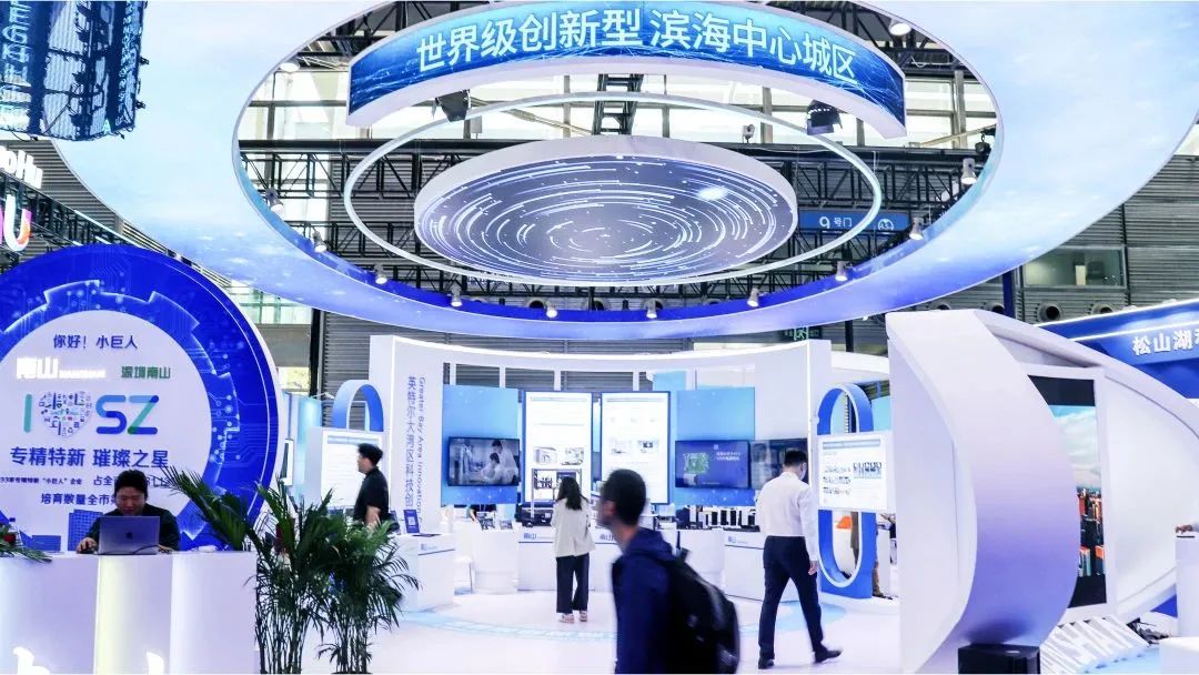 在南山展区上方还有一个圆形星空顶,寓意着像宇宙一样拥有更广阔更开放的空间,欢迎更多企业来到南山、落地南山,就像每一颗星星一样璀璨。南山区作为经济大区、科技强区、创新高地,高度重视专精特新企业培育工作。截至目前,南山区共培育五批234家专精特新“小巨人”企业,占全市比重31.12%,培育数量全市第一。