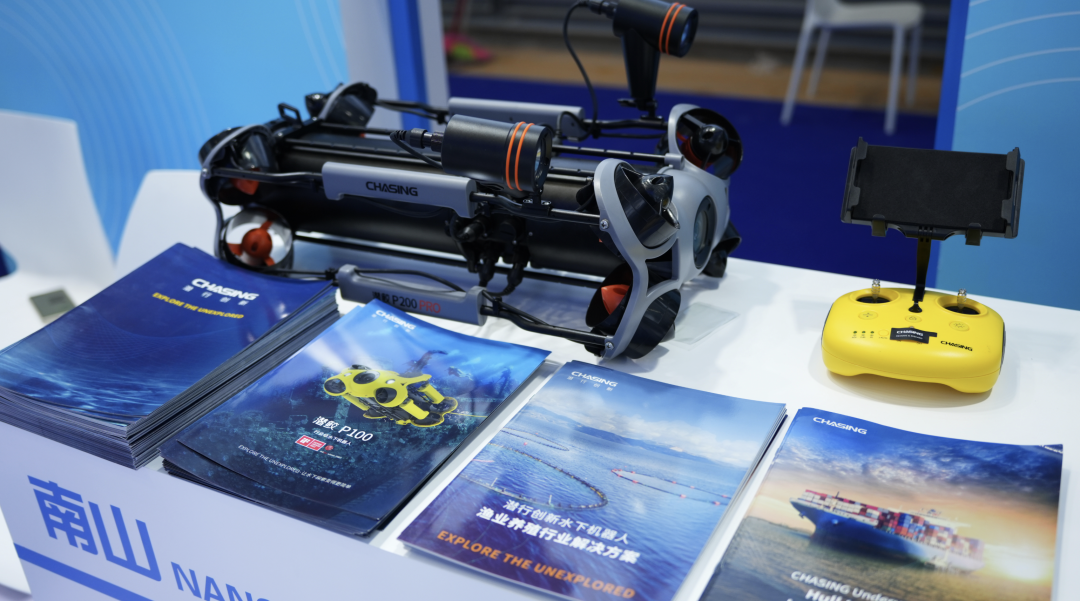 深圳潜行创新科技有限公司——一家专注于研发生产水下机器人的企业,现场吸引了不少参展人员的目光。据了解,该公司的产品主要为轻工业级和消费级水下无人机,他们研发的潜鲛P200 PRO水下机器人,可搭配不同的水下机械臂完成水下应急救援、环境检测、管道检测、线路修复以及环境观测、科考探索等一系列工作。