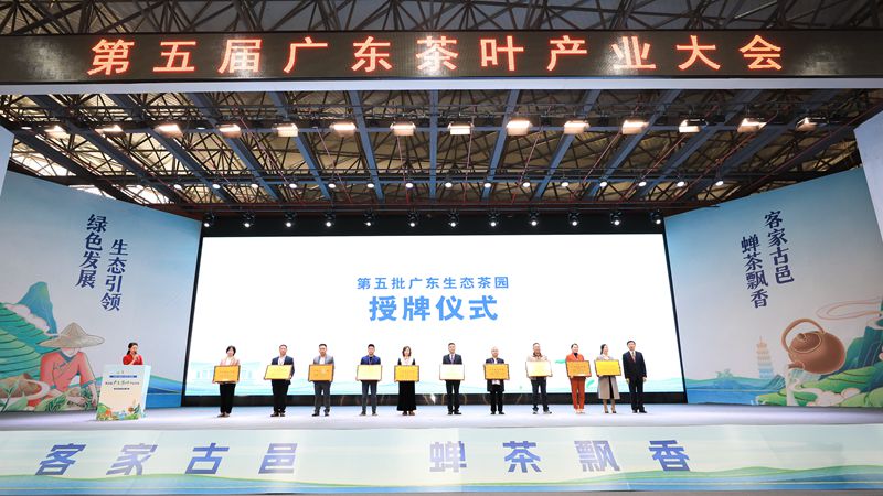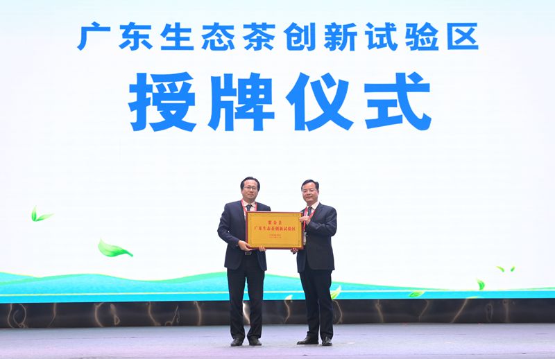 活动当天紫金被授予广东生态茶创新试验区称号,紫金县被认定为广东生态茶园区域品牌县。近年来,紫金县委县政府践行“绿水青山就是金山银山”发展理念,紧扣创建茶叶全域有机示范县目标,坚持生态优先,品质为本。紫金县生态秀丽,空气清新,被誉为“北回归线上的绿宝石”。好山好水育“蝉茶”。紫金蝉茶,是指特定品种在特定环境下,被一种昆虫——“小绿叶蝉”叮咬过,并由茶农手工采摘一芽二叶后,经特殊工艺精心制成的茶叶,其茶汤蜜香浓郁、喉韵回甘,并含有一股天然的蜜香,被誉为“茶中燕窝”。