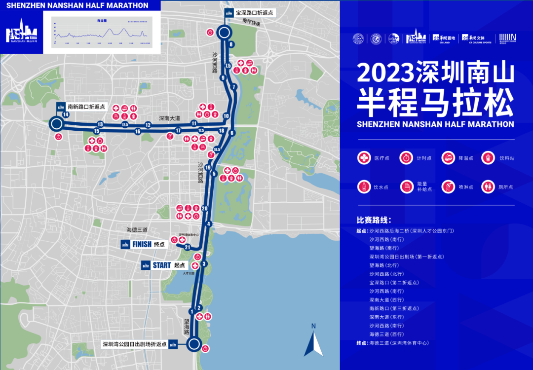 赛道全程21.0975公里,由沙河西路、深南大道组成“一纵一横”,正好是一个“T”字形。