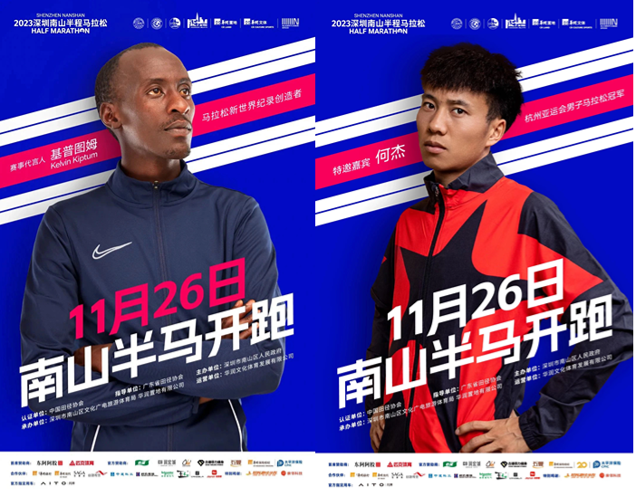 本届南山半马请来了世界马拉松“新王”基普图姆,为赛事代言,并邀请到2023年杭州亚运会马拉松冠军何杰,为赛事鸣枪。