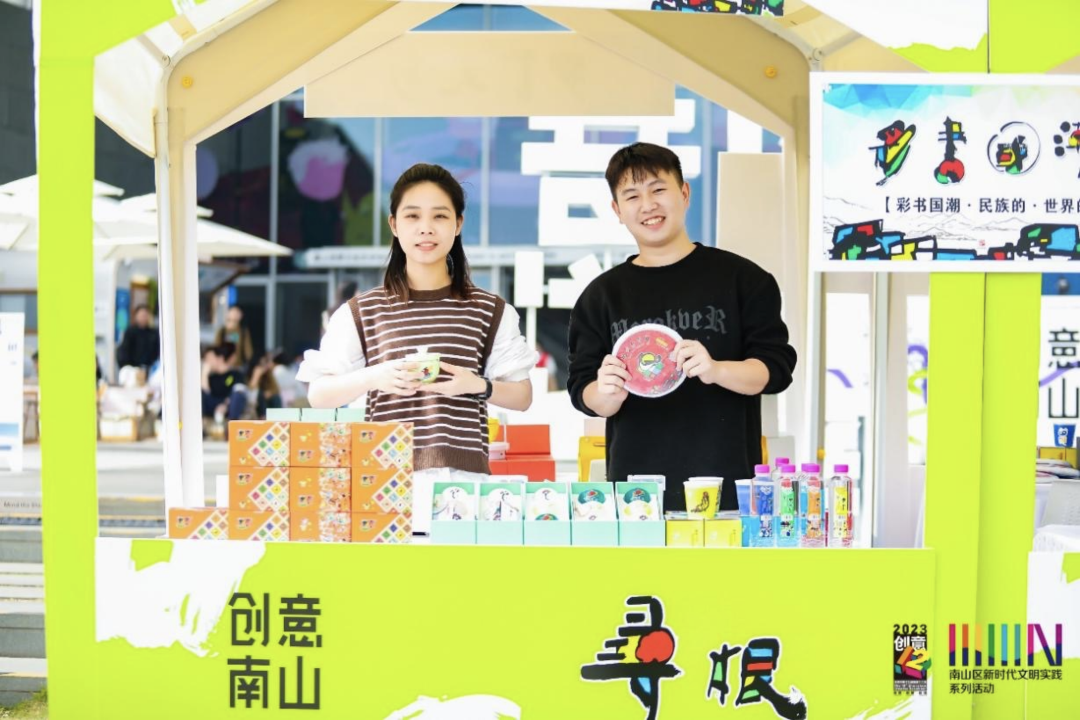 为了让观众近距离地感受中华文化的博大精深,开幕式还匠心独具地设置了创意市集,展示了深圳礼物、纸胎漆器、内画、彩书书画等文化创意产品,供市民现场参观体验。