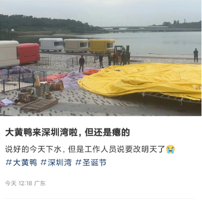 大黄鸭“游”到了深圳湾