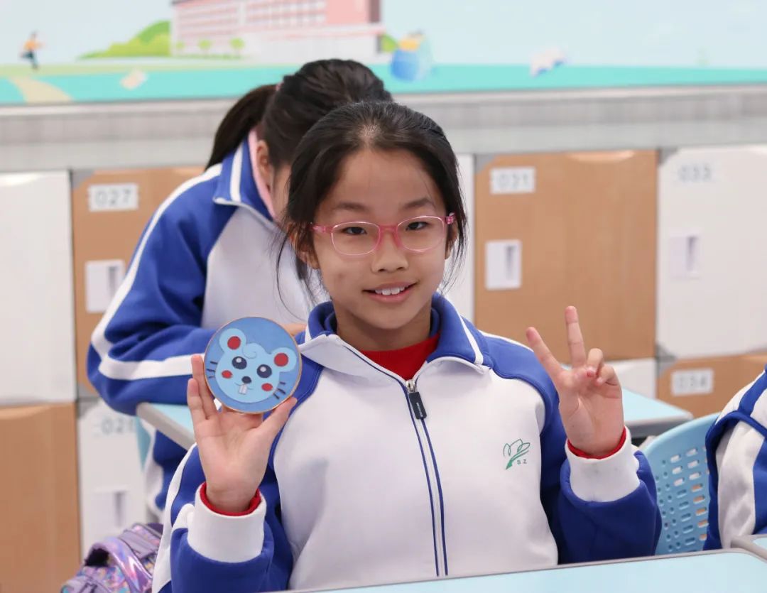 陈灵慧和李泽欢老师走进四(1)班,为学生带来了一堂别开生面的劳动教育课,手把手带领学生制作景泰蓝十二生肖图案的杯垫。