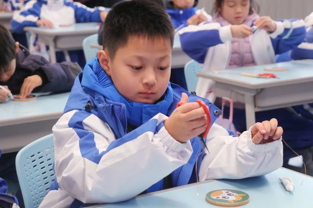 在忙碌的制作过程中,学生们亲身体验到手工艺术的乐趣和成就感。通过这一独特的劳动教育课,他们不仅学到了新的技能,更培养了创造力、专注力和耐心等重要素养,实现了美育和劳动教育跨学科融合。