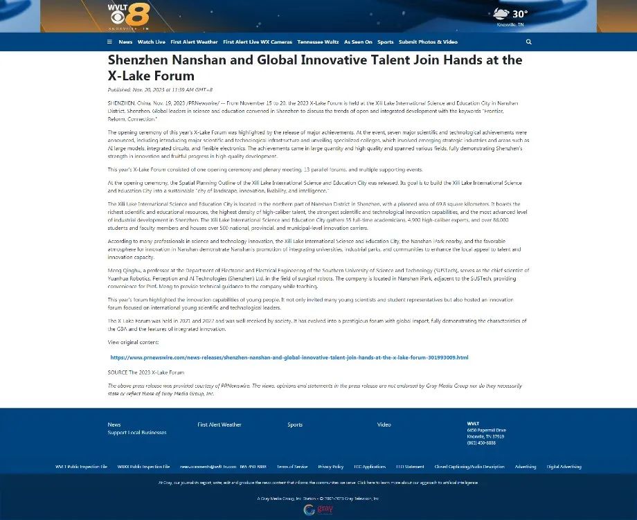 今年11月,一场国际盛会让南山成为外媒关注的焦点。来自欧美、亚太等地区44个国家的超过700家媒体,以六种语言同时报道了在南山举办的“2023西丽湖论坛”。美联社、美国福克斯新闻网、哥伦比亚广播公司、美国全国广播公司、西班牙埃菲社、《欧洲商业杂志》以及日本《朝日新闻》等境外媒体都在报道中关注到,全球科教领军人物齐聚于此,以“前沿、改革、联通”为关键词,共商开放融合发展趋势。