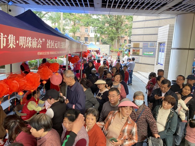深圳新闻网2023年12月29日讯 12月28日,明珠街社区湾畔花园张灯结彩、热闹非凡,一场由明珠街社区主办,以“国风市集,明珠庙会”为主题的元旦活动开幕。本次活动吸引了超200名社区居民前来参与,现场人头攒动,欢声笑语不断。