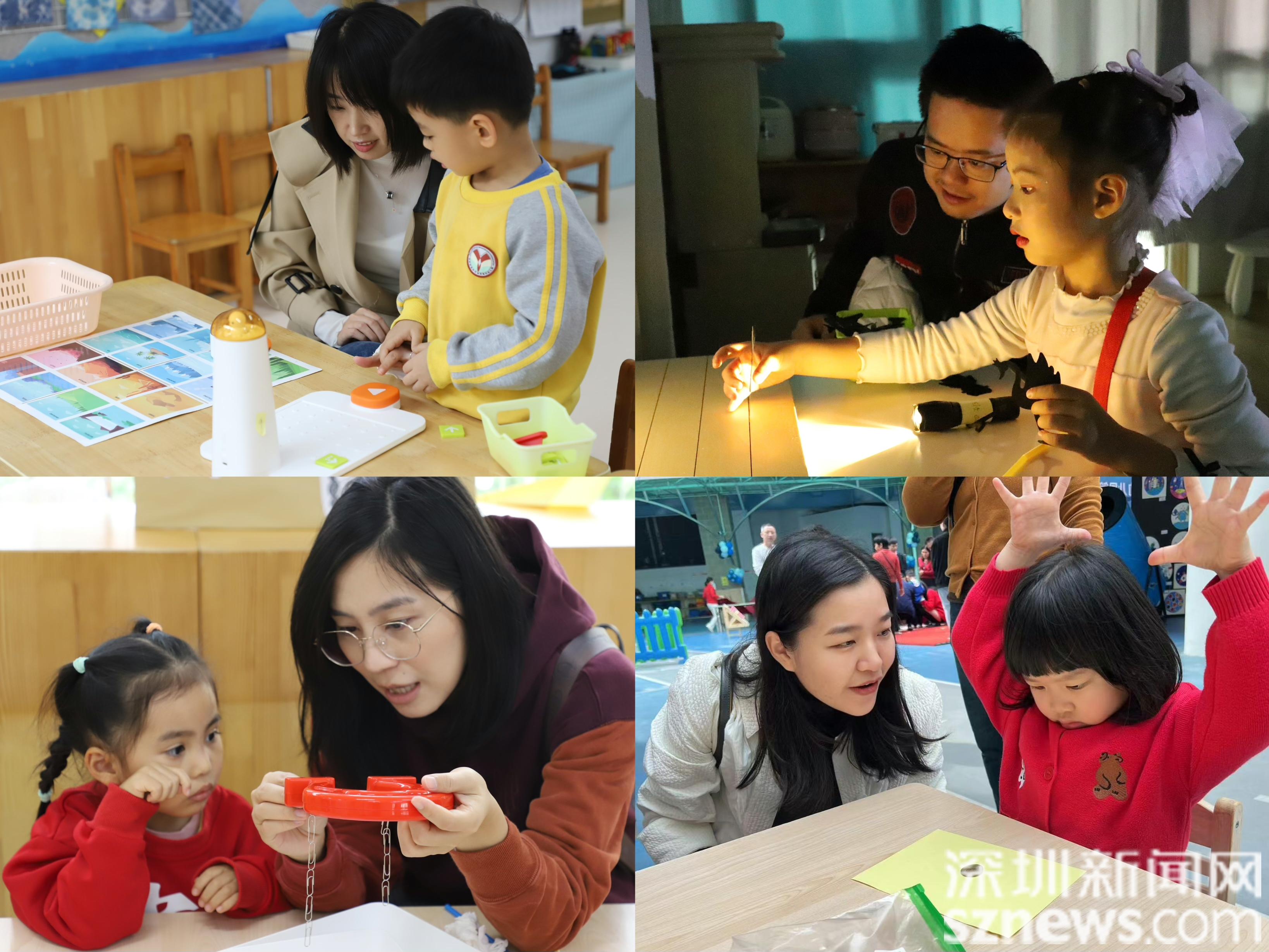 开幕式后,本届科技节迎来“含科量”十足的科技游园互动环节。为了亲近科学,走近科学,进一步体验科学的神奇和奥秘,幼儿园特别邀请到幼儿家长参与其中,由家长带领孩子们自由畅玩,乐享科技。“科技观影、益智挑战、科学制作”三大主题活动贯穿科技游园的始终,鼓励孩子们用眼看、动手做、用心感受。园内和每个班级都精心设置了不同的主题益智挑战和科学小实验,妙趣横生,让不同年龄的孩子能够突破班级限制,走班串班去发现自己最感兴趣的科学活动从而参与其中,激发了热爱科学、热爱探究、热爱创造的精神。家长们在参加完活动后,纷纷表示意犹未尽,收获满满,并点赞学校组织的本次活动非常有意义,在宝贝心里埋下了探索研究的种子。