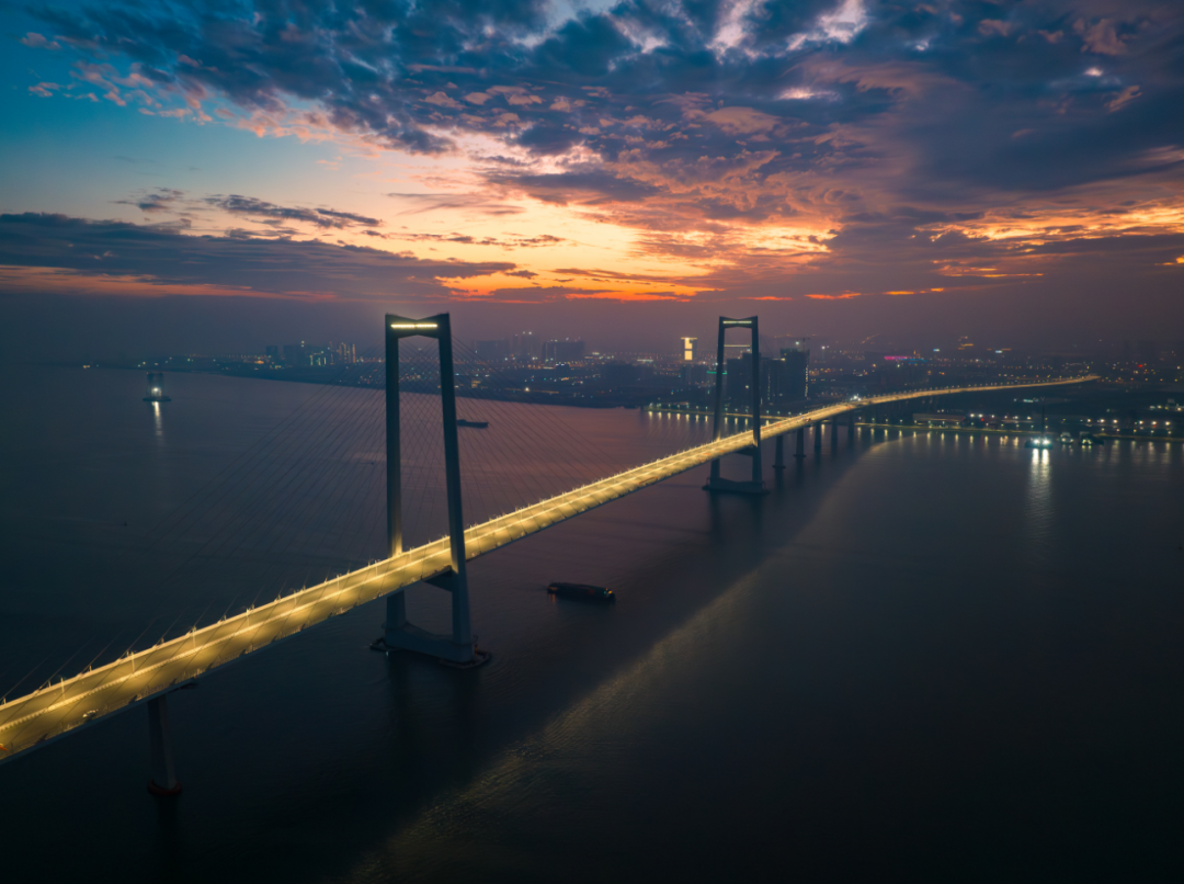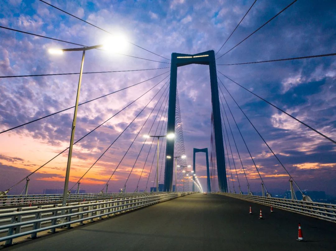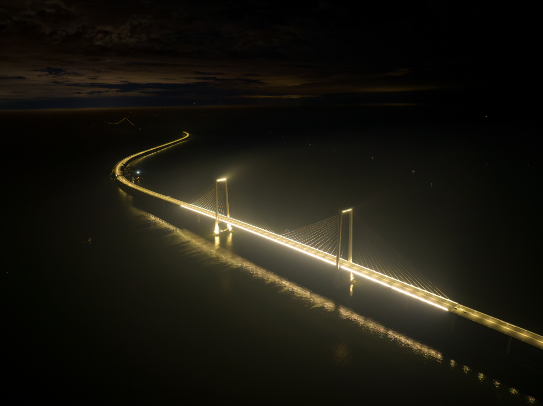 ▲深中通道中山大桥路灯及伶仃洋大桥外轮廓灯进行通电测试。