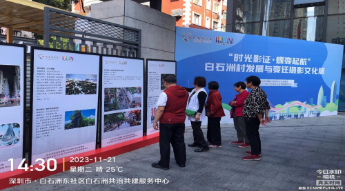 11月22日-12月6日,一场名为“时光影证·蝶变起航”的摄影文化展依次在白石洲东共建中心、京基百纳南山店、白石洲东社区深湾街心公园顺利开展,每个地点展览5天,共吸引了超3000名参观者前来欣赏。