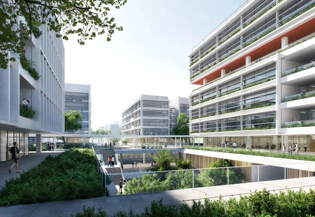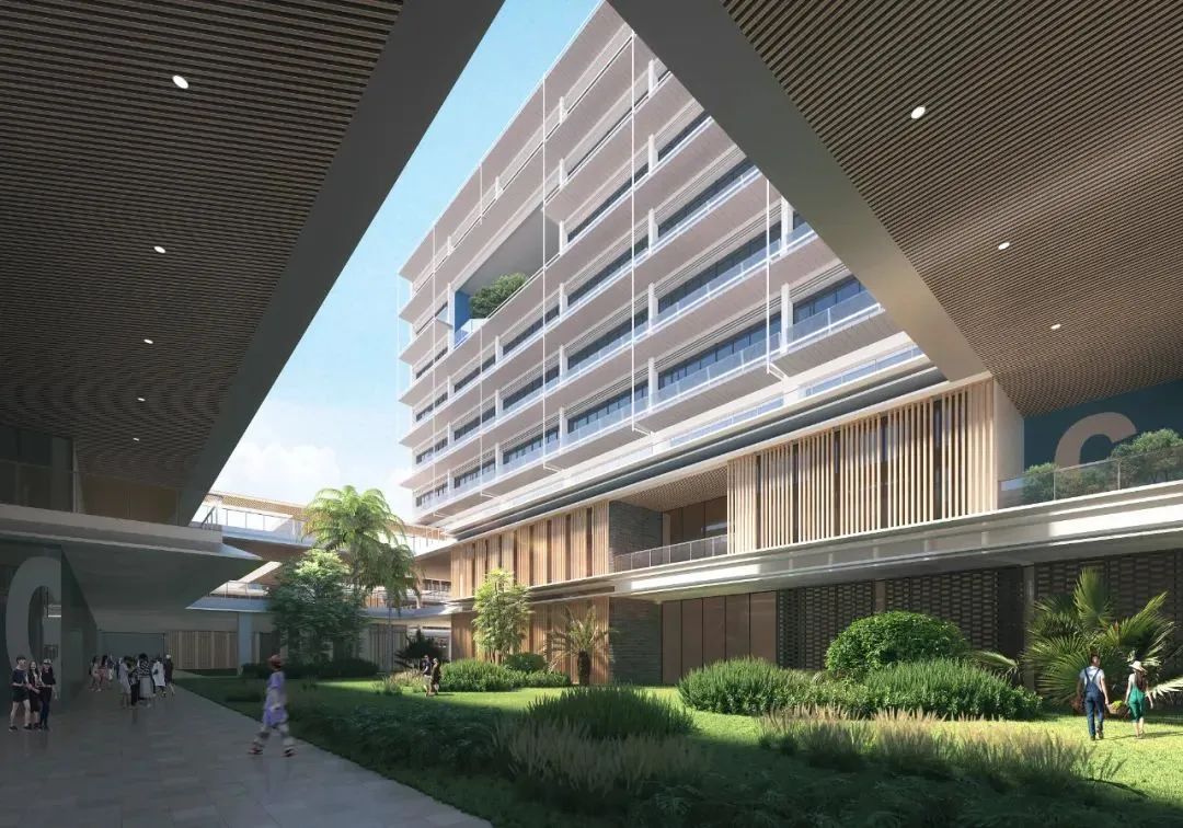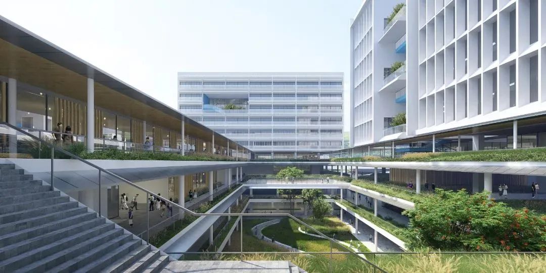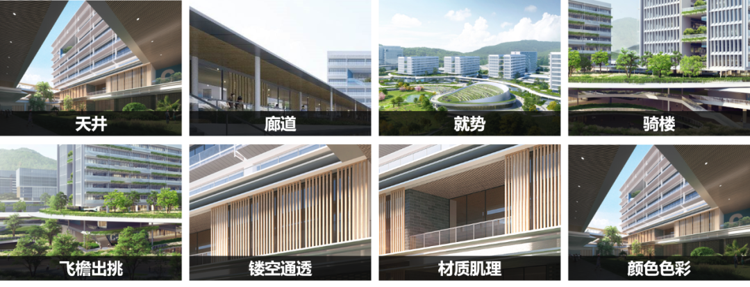 设计根植岭南文化和地域特色,通过组团、建筑、景观等,多维度系统性构建岭南新中式语境下的职业院校,强调校园与自然环境、建筑与园林景观、建筑内外空间的渗透交互,营建多元立体、开放共享的校园学习生活场景,激发学科交互与创新活力。