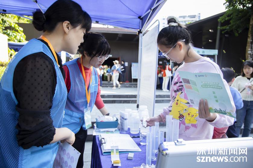 “绿水青山就是金山银山,我们一定要爱护环境!”在“绿美南山”摊位前,深圳市南山区生态环保青年志愿者协会工作人员边引导青少年体验水质检测互动,边详细地讲解环境与水源保护知识。