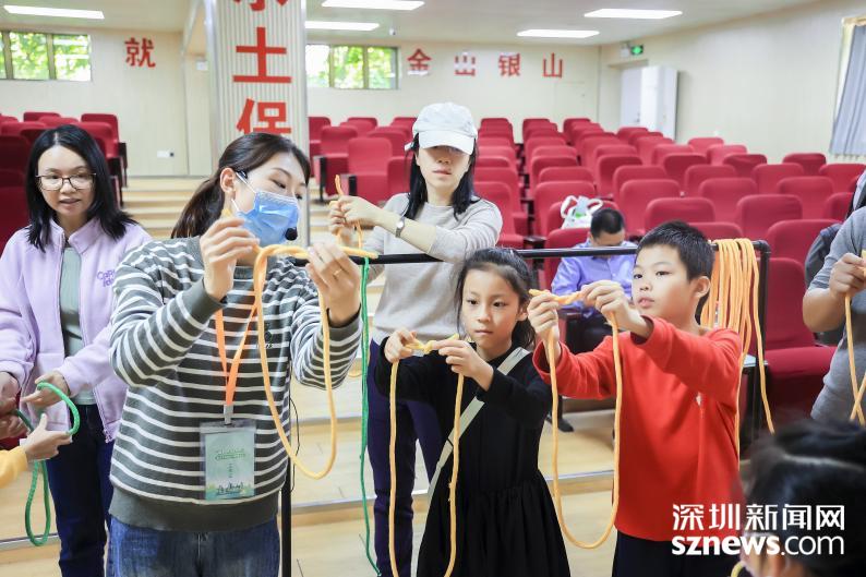 在南山区安全教育体验馆“安全教育”摊位前,工作人员详细地指导亲子家庭“结绳”,引导学习火灾结绳逃生技巧。“既能让亲子家庭在游园互动中学到知识,同时也为科普馆提供了走出展馆、走入社区、深入社会大众的平台”,工作人员介绍道。