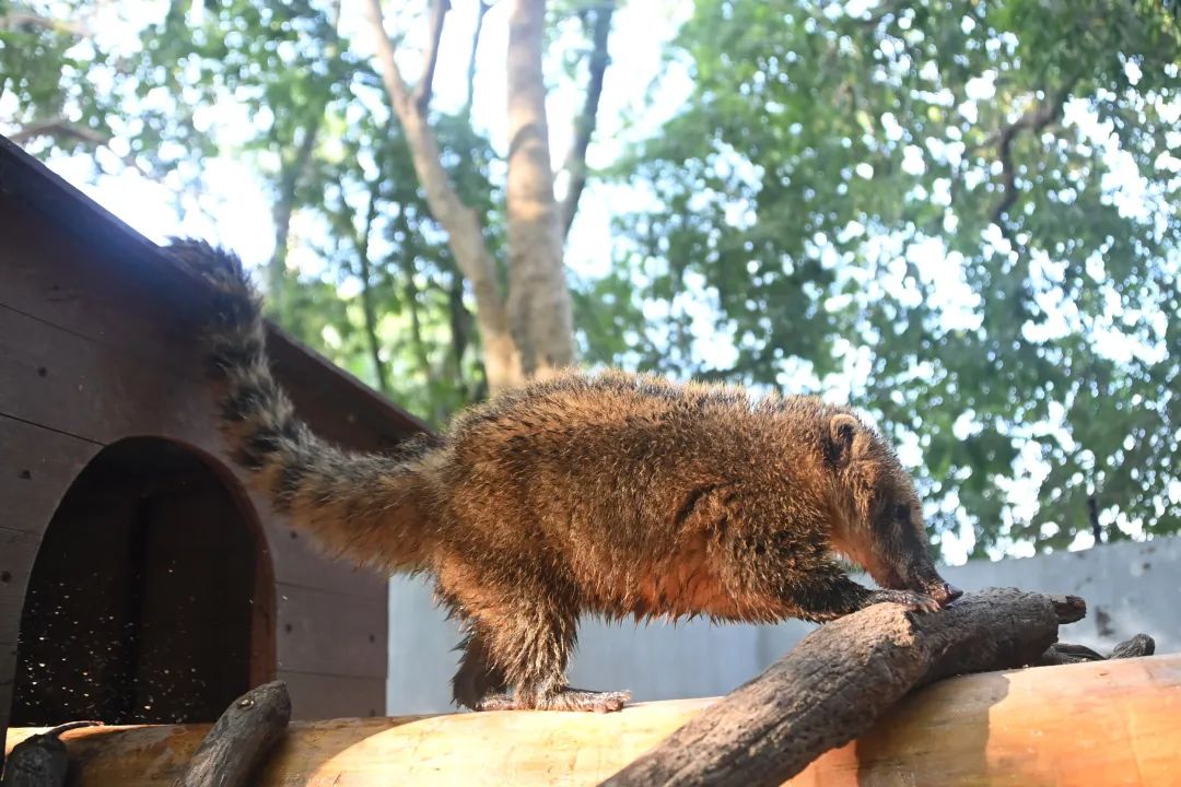 1月9日,深圳野生动物园人工哺育长大的一批12只南美浣熊乔迁新居,已正式亮相。它们最大的1岁左右,最小的6个多月大,都是该园繁殖“土生土长”的南美浣熊。园方根据南美浣熊的生活习性,特意为它们打造了宜居新家园。在动物园南美浣熊新家园,随着饲养员将内笼舍门打开,12只南美浣熊不慌不忙从内笼舍走到室外运动场,个个对新庭园都充满好奇,其乐融融。它们在水池里一边玩水,一边捉泥鳅,灵活穿梭在其中,显现欢乐和谐的氛围。