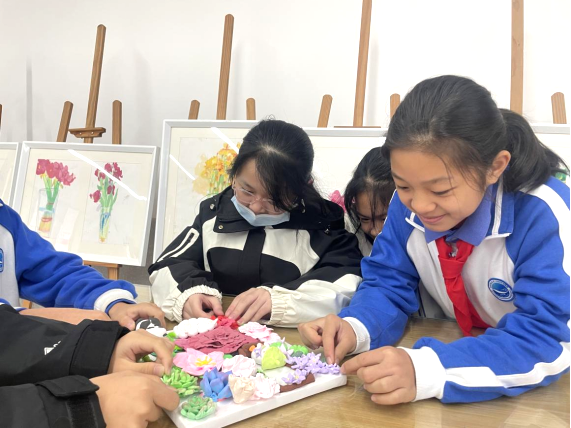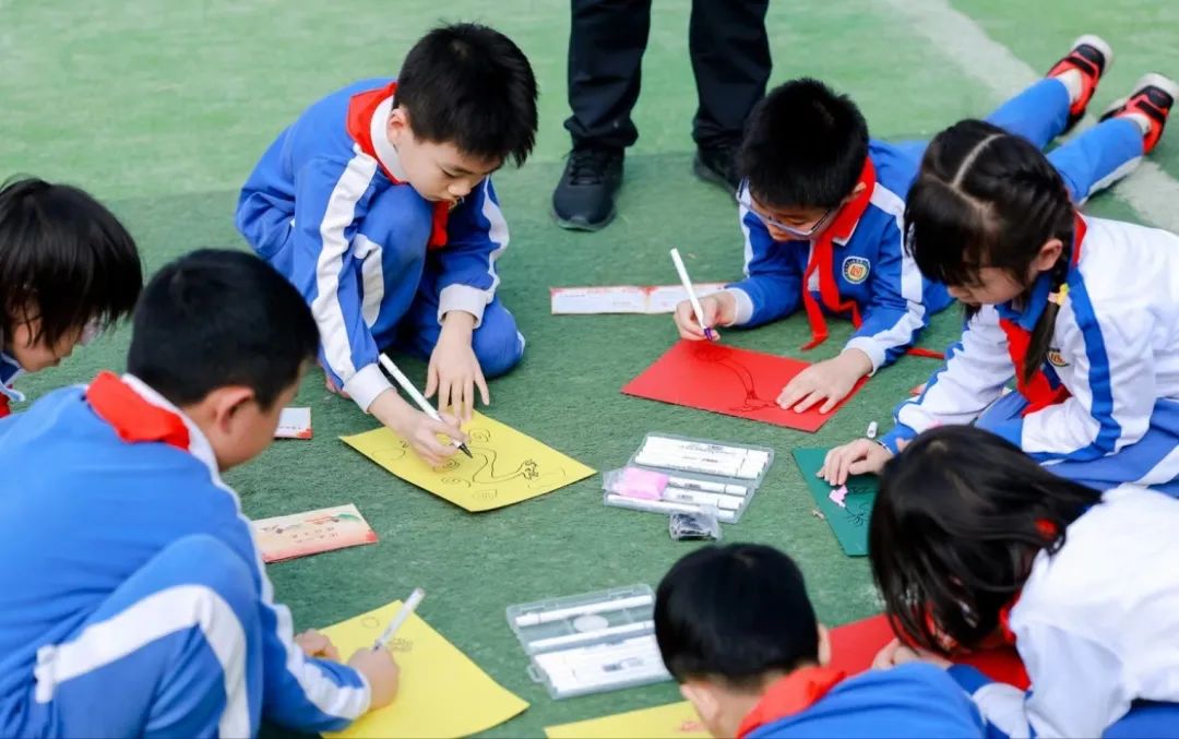其中,在学科实践方面,低学段开展“新年心愿”“班徽设计”,融入爱国爱校教育、道德教育教育;高学段开展“趣味汉字我介绍”“国家机关手绘图”,融入中华优秀传统文化、法治教育,让学生在趣味实践中,爱党、爱国、爱校、爱家。