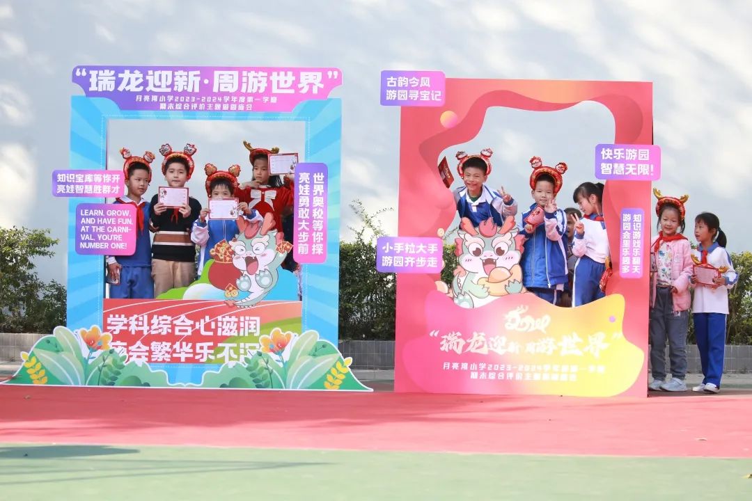 一二年级开展“瑞龙迎新,周游世界”综合评价主题游园庙会,各学科根据教学内容,以闯关、打卡等方式策划项目。三到六年级聚焦学科核心素养和关键能力发展情况,设有学科实践、综合答辩和创新素养测试。