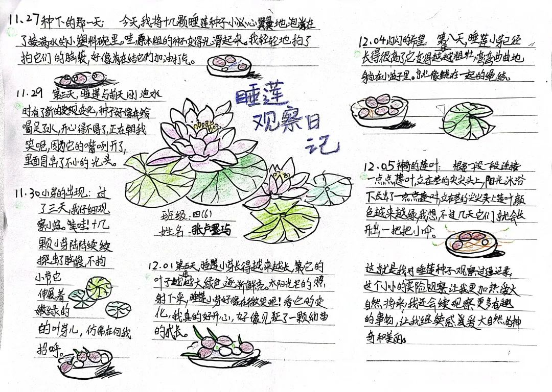 四年级设计“语文+科学”展示性测评项目——《观察日记》。学生选择一种植物进行种植填写观察表,结合观察表完成观察日记。