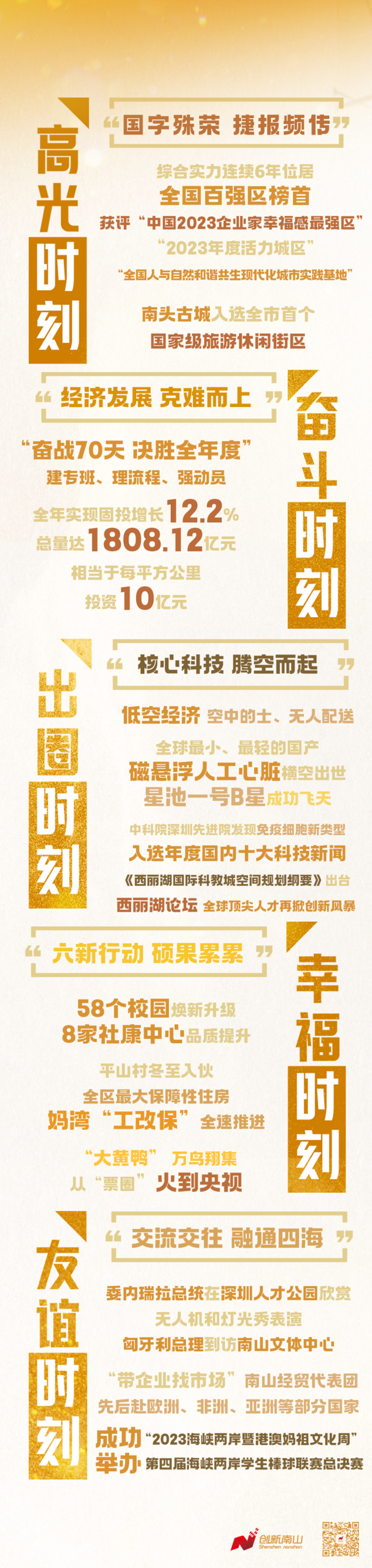 功不唐捐,玉汝于成。过去一年,区委团结带领全区广大干部群众,众志成城、上下齐心,讲政治、拼经济、惠民生、优环境,克服经济运行的新困难新挑战,防范化解各类风险,收获了许多温情瞬间,定格了属于2023年的“南山时刻”。