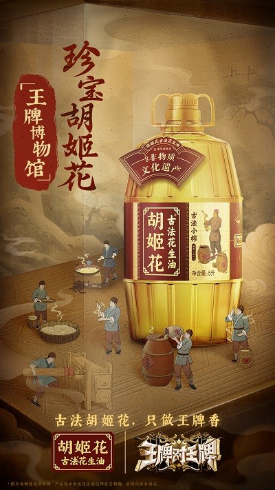 此次胡姬花与《王牌对王牌》第八季的联袂,正是因为与节目的文化传播理念高度契合。20世纪初,从一滴花生油自木榨机内缓缓流出开始,胡姬花所传承的古法榨油技艺精髓在数代匠人的坚守下延续发展。其对品质的追求亦如同寻香之旅,始终如一。从原料、榨油技艺等层面,细致打磨,精益求精。胡姬花的严苛始于原料的筛选标准,一粒粒颗粒饱满的精品花生,承载着胡姬花对品质的无上追求;其次,胡姬花坚守并发扬了古法榨油技艺的精髓,经过几代人的不懈尝试和创新下,将古法榨油技艺升级为如今的“古法六艺”之道:“胖花生,佳产地;秘法炒,留纯香;小榨技,见精细;取初榨,得上品;正宗味,真地道;依古法,妙储藏。”2015年,胡姬花古法榨油技艺被列入青岛市市级非物质文化遗产代表性项目名录。胡姬花“古法六艺”的每一步都是对优秀传统文化的传承和致敬,每一道工序都蕴含匠心,每一瓶地道浓香的花生油皆在严格标准下诞生,小榨机压榨,同等产量比普通大榨机约慢10倍,但这一切都是为了捕捉那老传统的味道——浓郁、纯正、回味无穷的花生香,才成就如今备受食客青睐的胡姬花古法小榨花生油。
