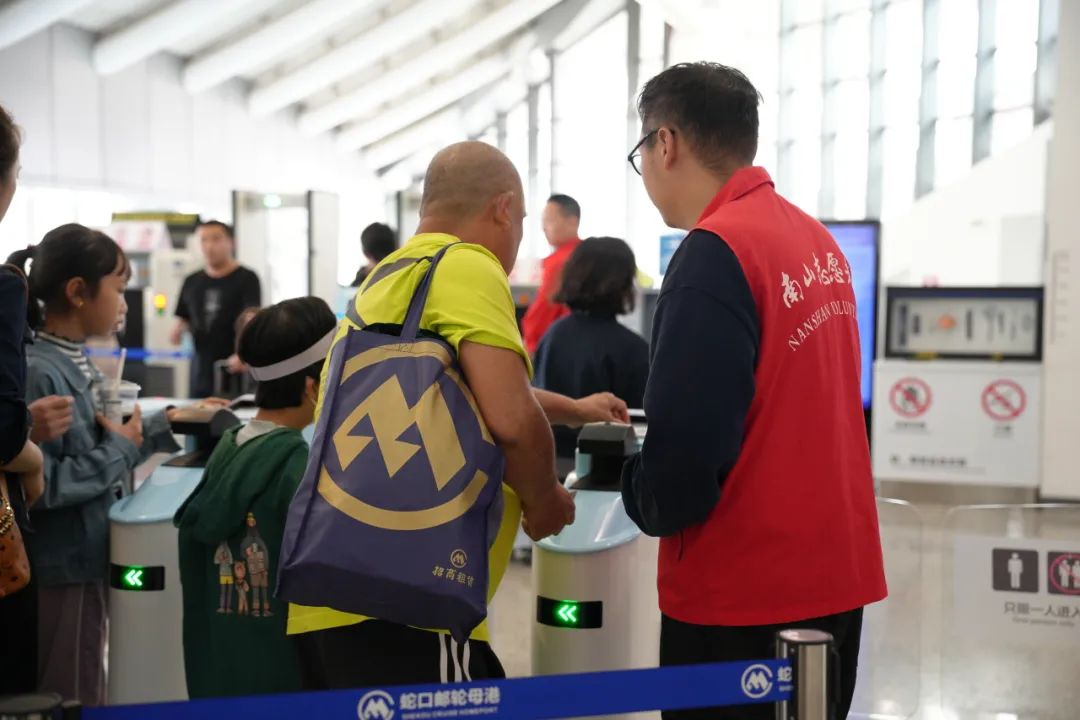 在深圳湾口岸与蛇口邮轮中心,志愿者们分布在售票大厅、进站口、出站口、安检口等人流聚集地,为旅客提供出行咨询、秩序维护、安全劝导、重点旅客帮扶等贴心志愿服务。