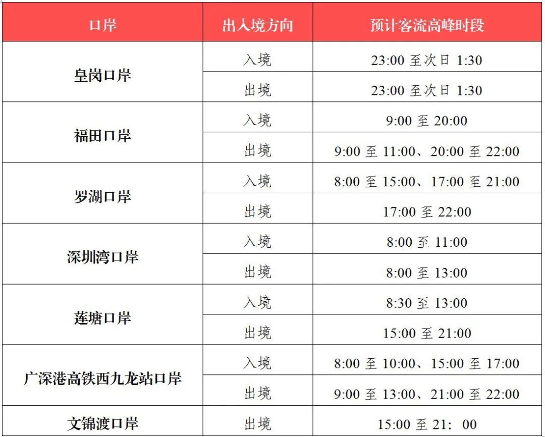 请合理选择通行口岸及通关时段,错峰出行,预留充足时间用于办理通关手续。