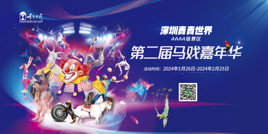2024年春节期间,青青世界推出第二届皇家马戏团表演活动,将为观众带来前所未有的感官体验,马戏团舞台表演、主题卡通动漫人物巡游互动、多主题炫酷非遗杂技表演,让游客感受不一样的新年氛围。