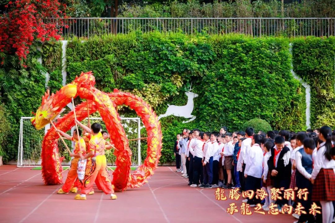 典礼上,创意闯关活动、《龙的传人》歌舞表演、武术展示和舞龙表演等精彩纷呈,全校师生共同跳起健身操,以充满活力的舞姿迎接新学期的挑战。