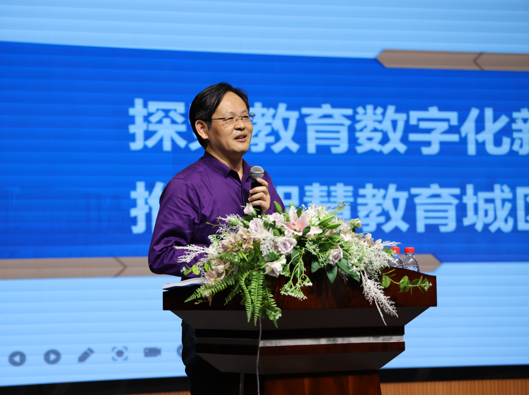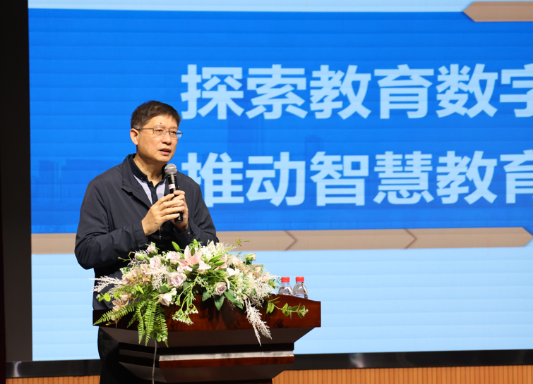 石义琦以《探索教育数字化新赛道,推动智慧教育城区建设》为主题,回顾了2023-2024学年第一学期南山教育信息化工作,并部署了新信息化学期工作计划: