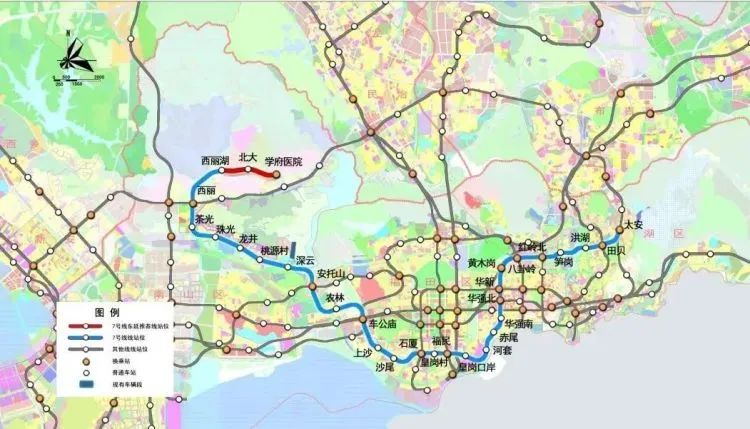 7号线二期(东延线)计划2025年建成,建成后将增强南山内部联系,串联深港合作区与西丽湖国际科教城,支持综合性国家科学中心的建设。同时,深大总医院片区居民的出行也将更高效便捷。
