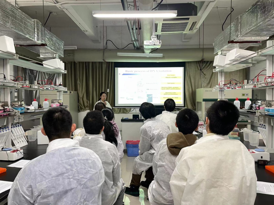 上午的实验是小鼠肝脏DNA的提取。由于南科大是全英文授课,同学们一开始还不太适应,但在老师们耐心细致的讲解下,全英文的讲义课件也变得更好理解了,甚至有些仪器设备,同学们不知道中文名称却记住了英文名称。