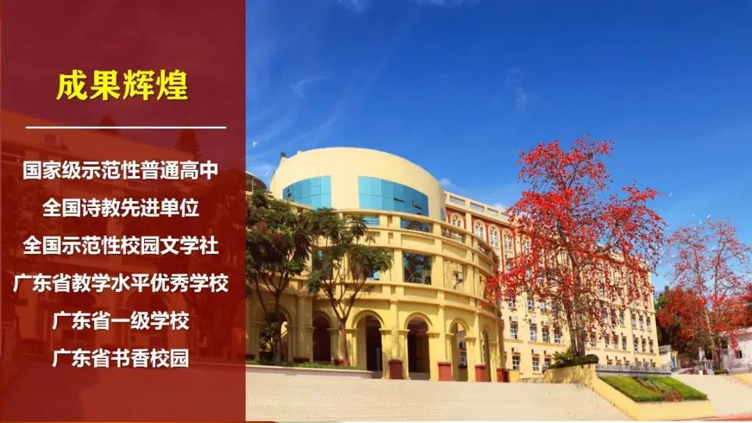 学校是国家级示范性普通高中、广东省一级学校、广东省教学水平优秀学校。