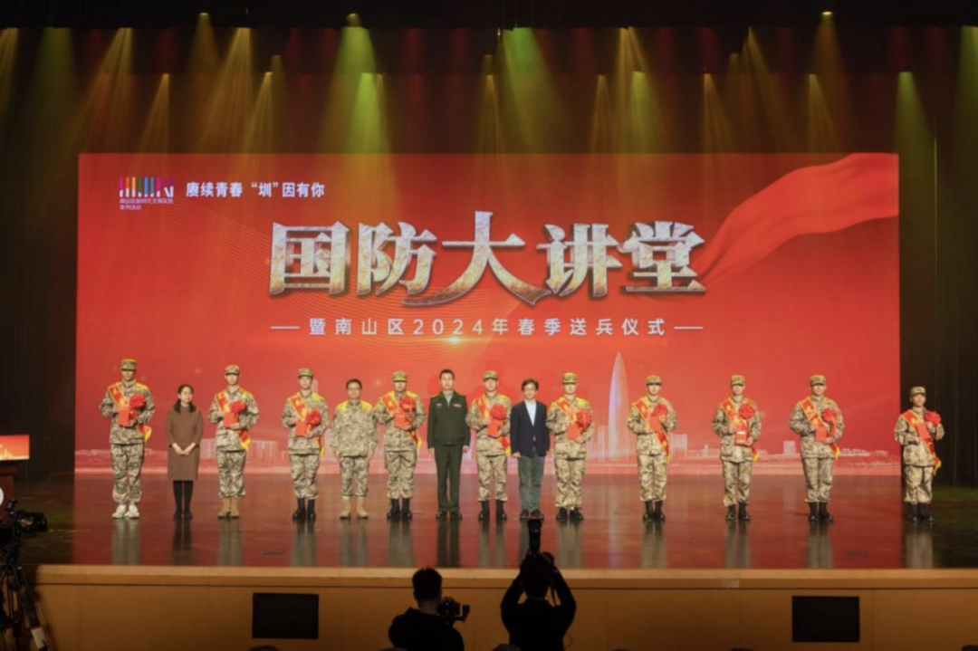 阳春三月送新兵,一身戎装踏征程。3月15日,深圳市南山区“国防大讲堂”暨2024年春季送兵仪式在深圳大学文汇礼堂举行。南山区百余名新兵身着崭新戎装、胸佩红花、肩披绶带,带着家乡父老的嘱托与牵挂,光荣奔赴火热军营。