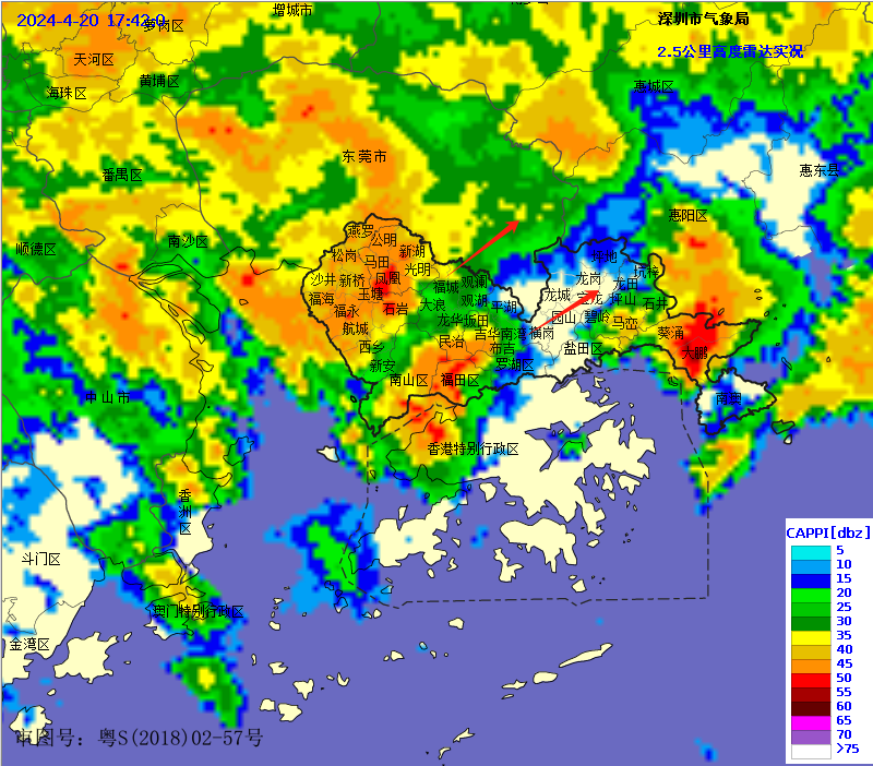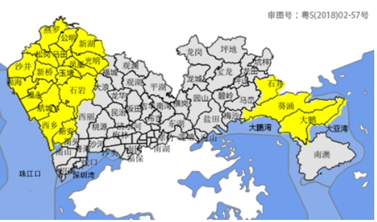 【深圳市分区暴雨黄色预警信号】预计宝安区、光明区、坪山区(石井街道)和大鹏新区(大鹏、葵涌办事处)2小时内将出现30-40毫米降水和6-7级阵风,深圳市气象台2024年04月20日17时45分在上述区域发布暴雨黄色预警信号,全市进入暴雨戒备状态。上述区域存在山洪风险,请注意防御暴雨可能引发的局部内涝、山洪等灾害。