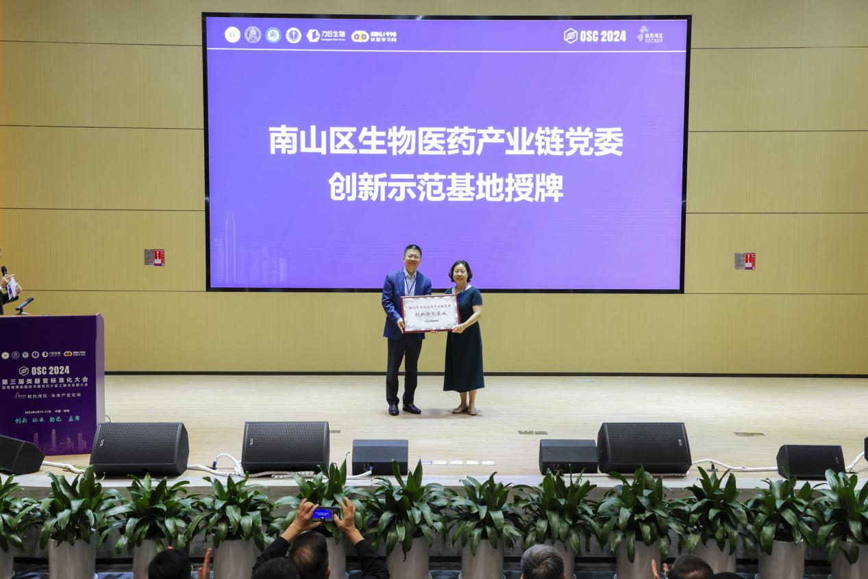 活动现场除了产学研医药各界精英同台论道,南山区生物医药产业链党委创新示范基地也正式挂牌,致力推动创新链与产业链深度融合,打造产学研要素资源紧密互动、顶尖人才团队集聚、一流科技成果频现、优质创新企业涌现的融合、开放、共享的创新生态。