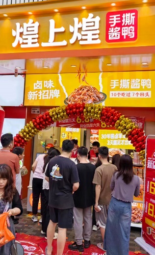 4月27日开始,煌上煌在深圳发起了一场“0元吃鸭,请深圳人吃新卤味”的活动,彻底引爆了市民的热情。5月1日,在深圳海雅缤纷城,更有大型新品发布暨尝新路演活动举行,现场不仅可以体验手撕酱鸭的独特口味、参与游戏赢取大奖、打卡拍照的场景,还有精彩刺激的手撕酱鸭比赛等一系列有趣的互动环节。实地感受新卤味的同时,也为市民新添五一出游好去处。