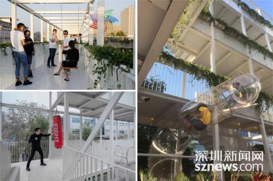 设计师在“公园”中还设置了篮球架、滑滑梯、秋千、拳击袋、跷跷板等各种有趣设施,吸引人们参与其中、相互遇见,继而触发更多的有趣活动。人们也可以把这个公园想象成一个巨型“乐高玩具”,只要有新的想法都可以“插接”上去,让这个“公园”可以伴随人们的想象力“自由生长”。