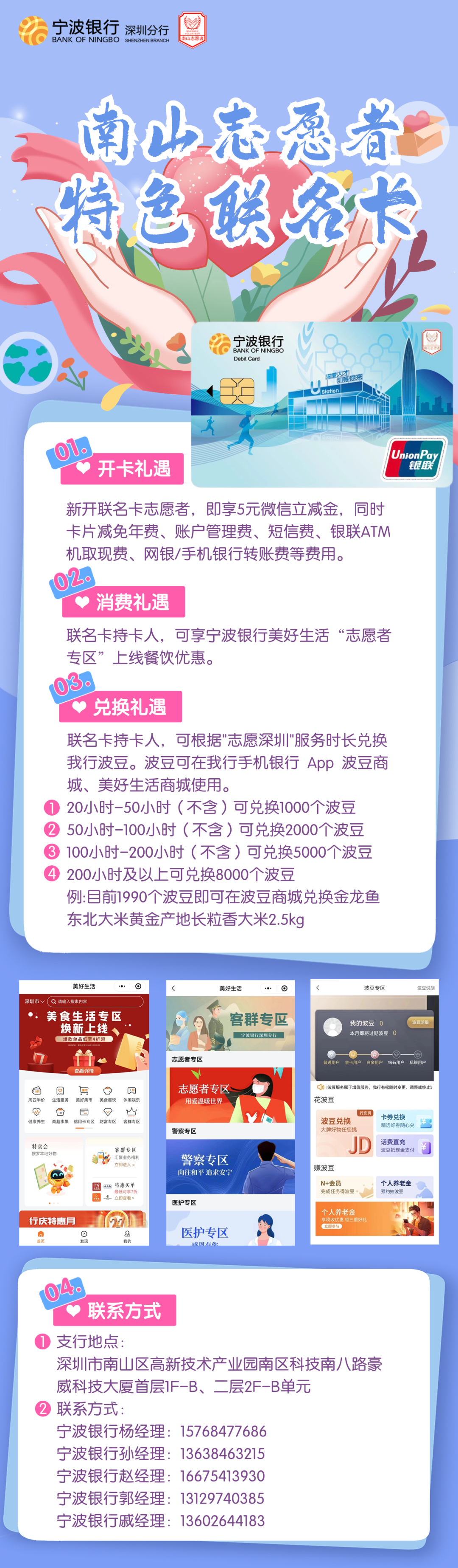 注:如有对志愿者礼遇计划疑问,或有意愿成为礼遇爱心商户,可联系南山区志愿者联合会秘书处。礼遇优惠内容解释权归各爱心商户所有,活动最终解释权归南山区志愿者联合会所有。