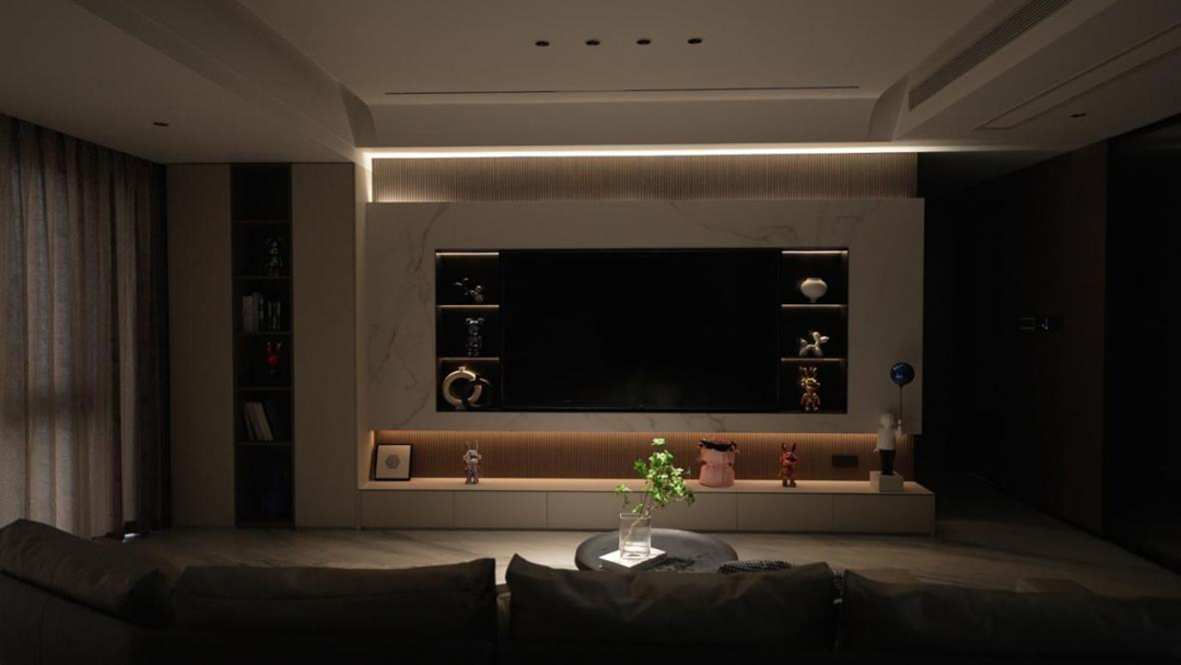 在无主灯设计的空间适配上,沐光设计方案完美契合家装设计的各式巧思。巧妙地将多样化的照明手法无缝融入无主灯设计之中,确保每一缕光线的布局都精准考究,达到完美效果。